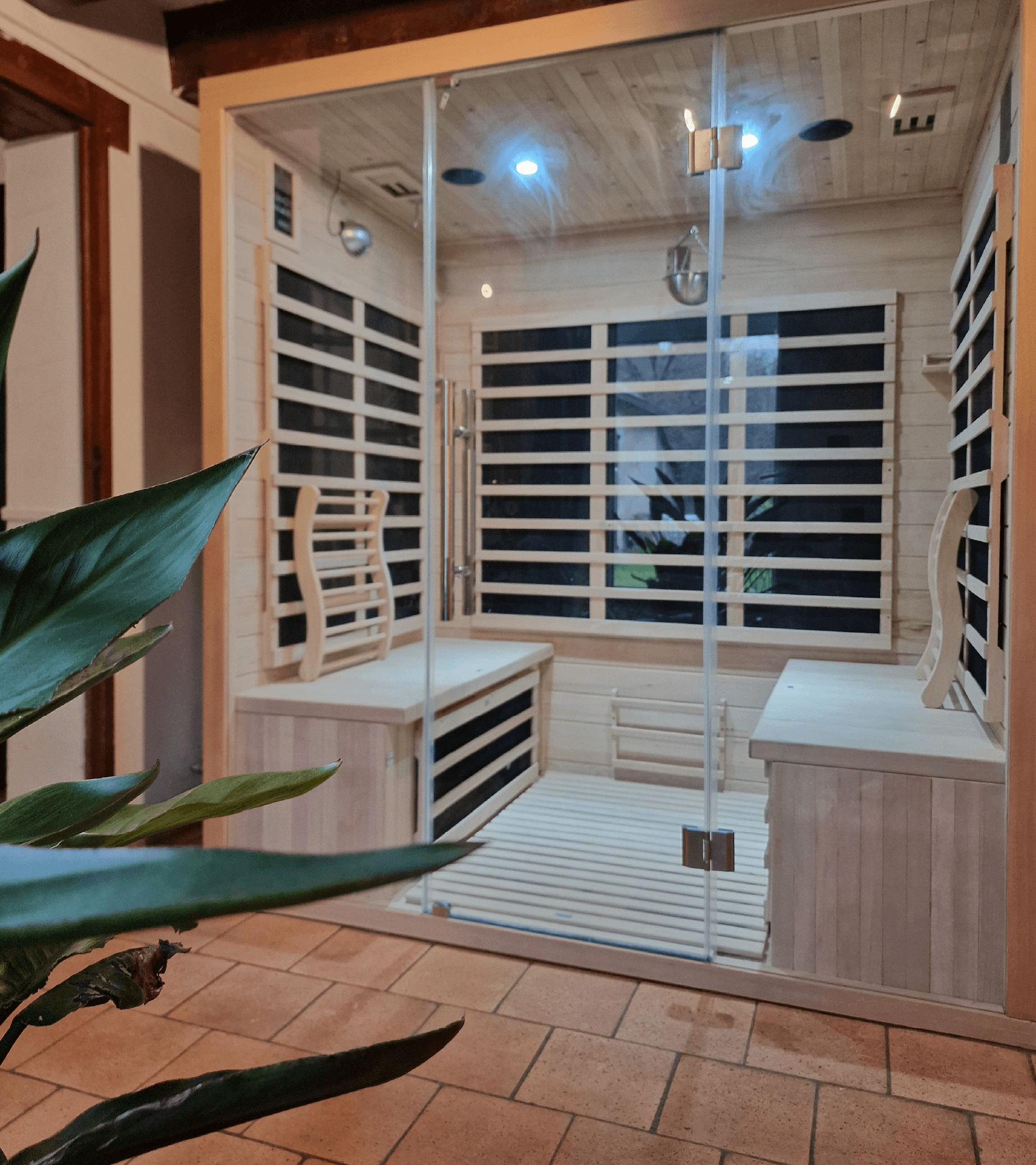 Sur un terrain de 6.000 m², vous pourrez profiter de la piscine couverte et d’un jacuzzi partagés, ainsi que d’un spa et d’une terrasse.